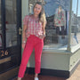 Straight leg high wasted 5 pocket pants.
